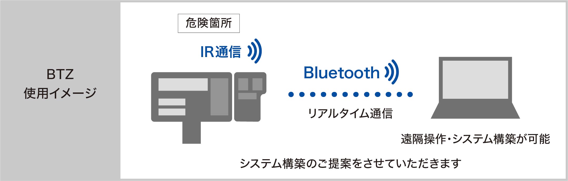 データロガーDLZ-200、Bluetooth出力ユニットBTZの使用によりデータの印字や保存が可能です(周辺機器・オプション別売)